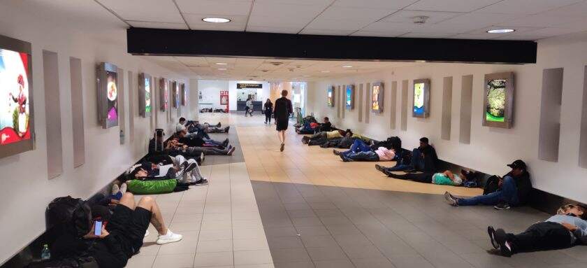 The international section of Lima’s airport is quite nice! As lovely as any other international airport you’ve seen. Flying from Lima to Cusco would be a domestic flight, though, requiring me to exit the airport completely. Despite reading it was common for people to sleep at this airport, I wasn’t expecting all the walls to be filled with bodies!